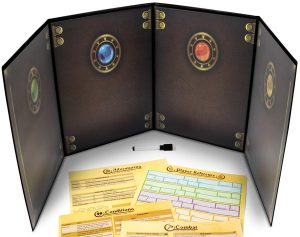 Take greater control of your campaigns with this fully customizable 8 pocket GM screen. This screen is sized for letter paper! Just print your notes and maps, or worldbuilding lore and art, and slide them in. Place campaign notes into 8 convenient pockets. You can also use dry erase markers to take notes directly on the vinyl, Simply wipe it off when your session’s done. (We recommend erasing after every session.) Stands 11.5″ tall and over 3 feet wide, then folds down to just 1/2″ thick. Premium size for home or travel play — adventurers welcome!