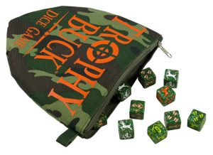 Trophy Buck is a fast-moving game about deer hunting. … Each game takes 10 to 20 minutes, and can be taught in a single round. It comes in a durable cammo bag – great to take on camping or hunting trips. Trophy Buck is based on the Zombie Dice mechanic – but with four dice colors and 12 dice, it’s a brand new experience.